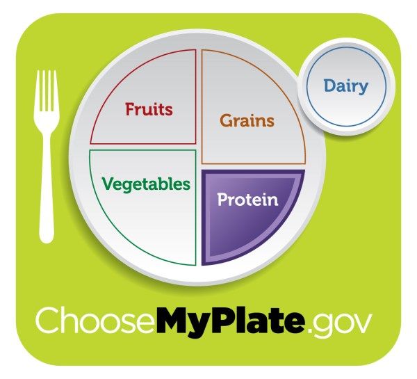 What was once a category called “Meat and Beans” in past Food Pyramids is now simply “Proteins” on MyPlate, broadening the protein category to a variety of other food sources. This protein food group includes all foods made from meat, poultry, seafood, beans and peas, eggs, soy, nuts, and seeds. Furthermore, the recommendation states all meat and